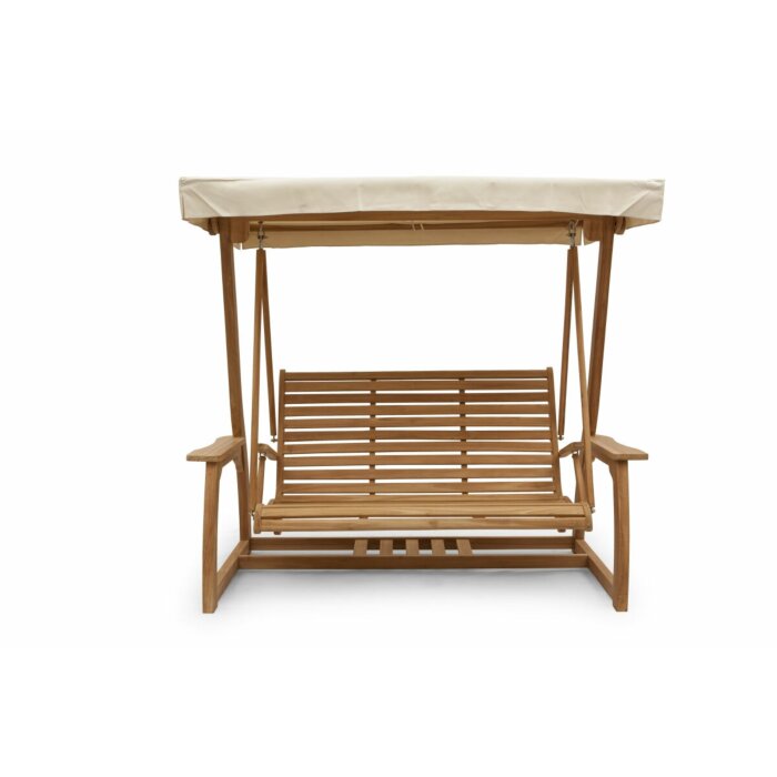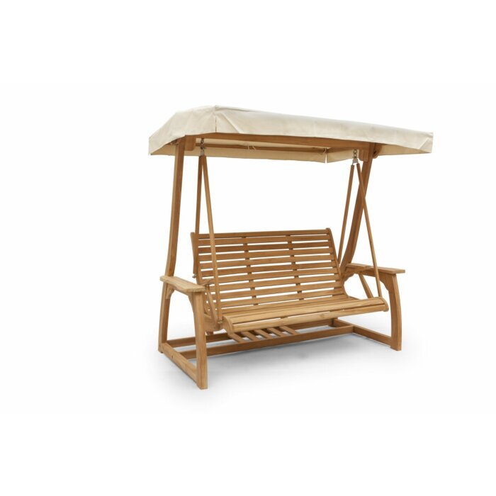 Deze houten schommelbank heeft een zeer uitnodigend effect en geeft elke tuin, terras of balkon een speels karakter. De teak schommelbank zitting is 150 cm breed en dit geschikt voor 3 tot 4 personen.